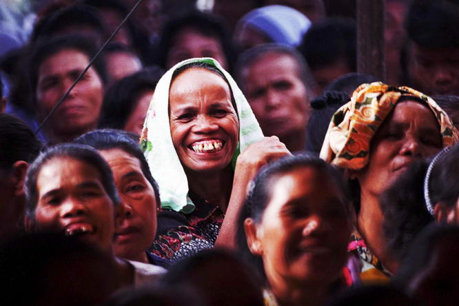 Perhatikan Foto 2. Foto itu diambil dalam sebuah rapat desa di Sumatera Utara. Suasana rapat desa itu sangat santai dan penuh gelak tawa. Dari aneka ekspresi yang ada, wajah seorang wanita di tengah kerumunan terlihat sangat lugu dan unik. Dan, untuk mencegah agar dia tidak terganggu dengan kehadiran kamera, foto diambil dari jarak yang cukup jauh dengan lensa 500 milimeter.