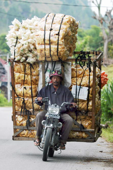 Foto 3 dibuat berdasarkan informasi yang didapat dari seorang teman bahwa penjual kerupuk di Pulau Samosir, Sumatera Utara, membawa kerupuk dalam jumlah besar cuma memakai sepeda motor. Dia biasanya mendarat di Pelabuhan Tomok sekitar pukul 09.00 pagi dari daratan Sumatera. Dari info itu, pemotretan dilakukan dengan "mencegat" sang penjual kerupuk di sebuah titik yang cukup fotogenik untuk jadi latar belakang pemotretan. Pemotretan dengan cara candid alias diam-diam menghasilkan ekspresi sang penjual kerupuk yang natural.